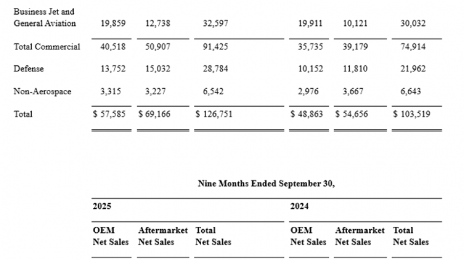 Wachstum im OEM-Geschäft in der kommerziellen Luftfahrt, bei Geschäftsreisen und in der allgemeinen Luftfahrt im unteren zweistelligen Bereich.