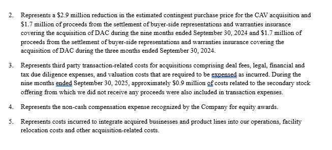 Das EBITDA, das bereinigte EBITDA, die bereinigte EBITDA-Marge und das Ergebnis pro Aktie enthalten nicht die Barausgaben, die wir für die Integration erworbener Unternehmen in unsere Geschäftstätigkeit aufgewendet haben, da dies ein notwendiger Bestandteil einiger unserer Akquisitionen ist.